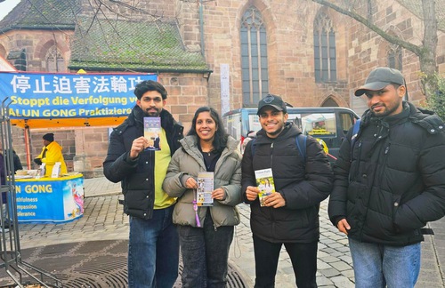 Un gruppo di studenti indiani in Germania ha affermato che era la prima volta che sentivano parlare della Falun Dafa e del prelievo forzato di organi da parte del PCC, hanno firmato la petizione, ed erano anche interessati a imparare la pratica.