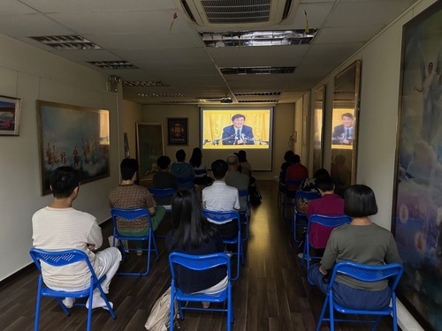 I partecipanti guardano i video delle lezioni del Maestro Li durante il corso di nove giorni sulla Falun Dafa, tenutosi dal 6 al 14 dicembre 2025