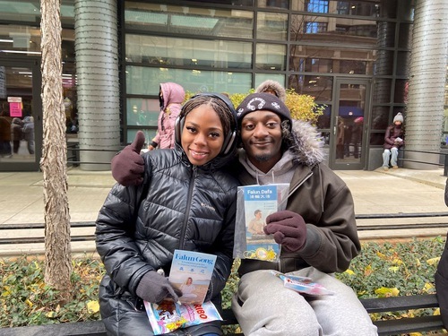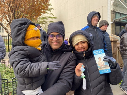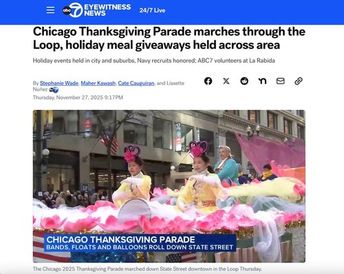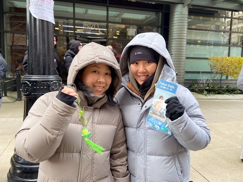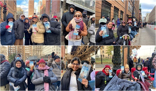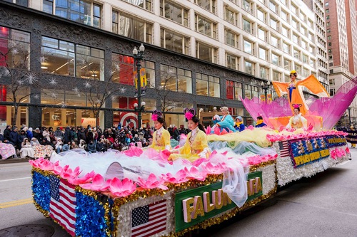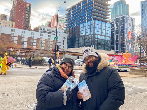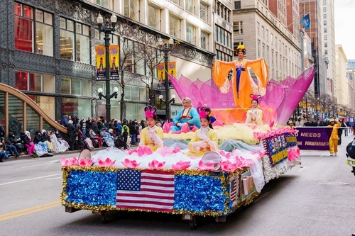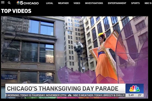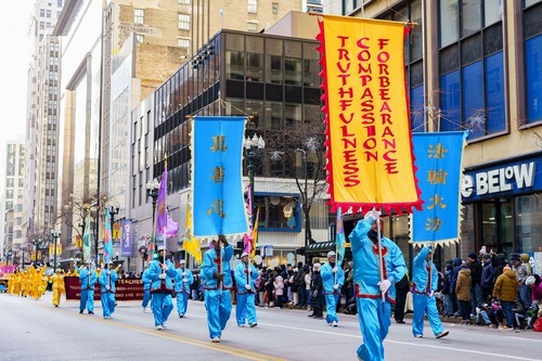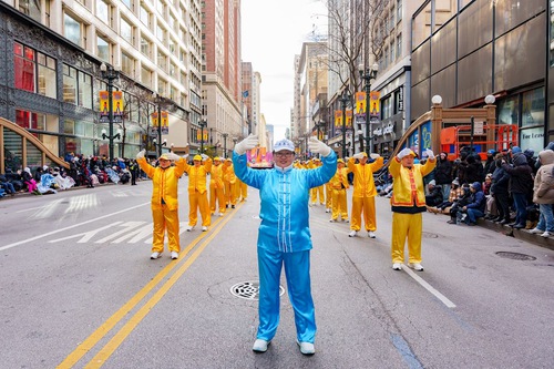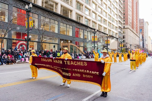 (Minghui.org) Lo scorso 27 novembre si è tenuta la 91ª parata del Ringraziamento, ed è stato il giorno più freddo dell'inverno a Chicago, ma molti spettatori si sono riversati in strada per vederla.