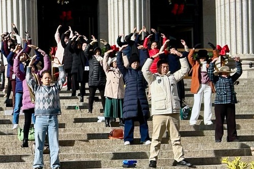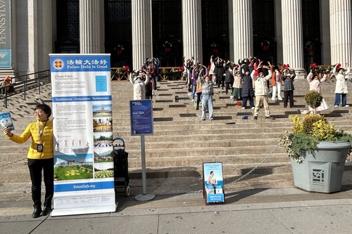 Il 27 novembre, i praticanti hanno dimostrato gli esercizi alla Penn Station di Manhattan il giorno del Ringraziamento