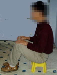 Il signor Gao Baoliang, cinquantenne, non poteva rimanere seduto a causa della necrosi del femore, quindi il detenuto Hao Chenglong lo ha costretto ad appoggiarsi al muro sedendosi su un piccolo sgabello.