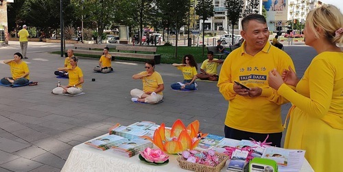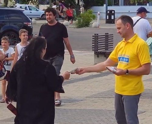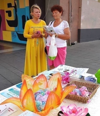 Durante il loro evento presso l'Hotel Perla di Costanza, i praticanti hanno parlato alla gente della Falun Dafa, dei suoi principi e del fatto che, in Cina, sotto il regime comunista, i praticanti della Falun Dafa sono perseguitati per la loro fede, alcuni hanno affermato di averne già sentito parlare.