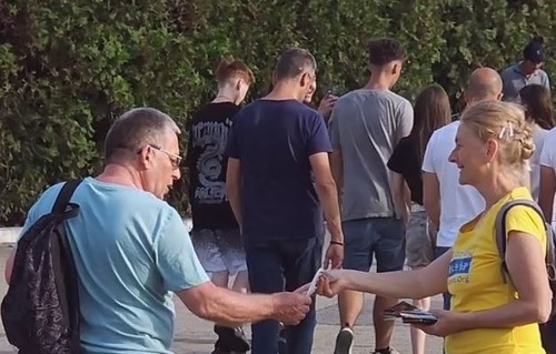 Hanno dimostrato gli esercizi della Falun Dafa, distribuito materiale informativo e parlato alla gente dei principi della Falun Dafa di Verità, Compassione e Tolleranza, raccontando anche come il Partito Comunista Cinese (PCC) faccia pressione sui praticanti affinché rinuncino a questi principi. Hanno risposto alle domande fatte dalle persone allo stand e raccolto firme per la petizione rivolta ai paesi del G7+7 [Nota dell'editore: il G7 include Canada, Francia, Germania, Italia, Giappone, Regno Unito e Stati Uniti; il +7 include Argentina, Australia, India, Israele, Messico, Corea del Sud e Taiwan] per porre fine alla persecuzione.