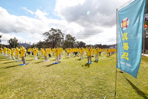 La conferenza stampa è stata un elemento chiave dei tre giorni di attività di chiarimento della verità condotti dai praticanti della Falun Dafa nella capitale australiana. Oltre a praticare gli esercizi ogni giorno e a esporre gli striscioni sui prati di fronte al Parlamento, i praticanti hanno anche visitato le ambasciate, raccolto firme in una elegante zona del centro città, allestito uno stand e incontrato i legislatori federali all'interno dello stesso Parlamento.