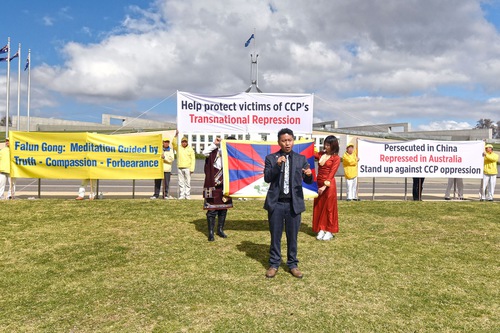 Diversi praticanti sono intervenuti alla manifestazione e hanno descritto personalmente la loro persecuzione da parte del PCC in Australia, e in che modo gli agenti del PCC ricattano, intimidiscono e molestano diversi settori cardine della comunità australiana. L'evento ha ottenuto inoltre il sostegno della comunità tibetana, in quanto un rappresentante del loro governo in esilio è intervenuto e ha reso noto il suo supporto. Congiuntamente ai legislatori australiani, la comunità tibetana ha chiesto al governo australiano di riconoscere le crescenti molestie e repressioni da parte del PCC, che minano la libertà e la sovranità anche dell'Australia.