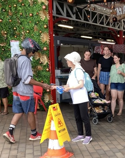 Una praticante ha distribuito volantini in un mercato di Tahiti