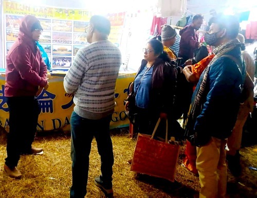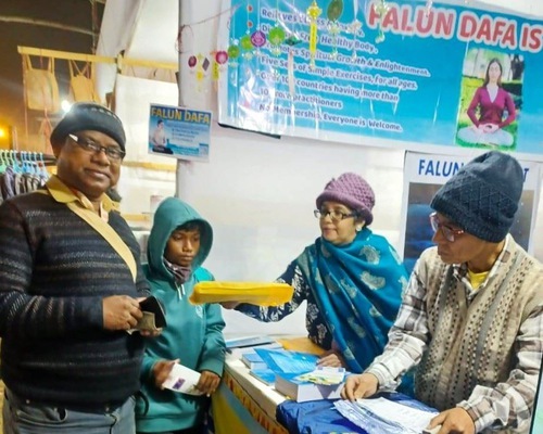 I praticanti della Falun Dafa di Calcutta, desiderosi di condividere con gli altri la pratica che li ha aiutati, hanno percorso 212 chilometri per presentare la Falun Dafa alle migliaia di persone che hanno partecipato alla fiera.