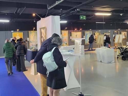 (Minghui.org) Dallo scorso 12 dicembre all'11 gennaio, la mostra “L'Arte di Zhen Shan Ren” si è tenuta in Belgio, presso l'I'ILOT Saint-Michel, accanto alla famosa Place Saint-Lambert nella città di Liegi. Le opere esposte sono state realizzate da artisti che praticano la Falun Dafa, che hanno dimostrato la loro comprensione di Verità-Compassione-Tolleranza e il significato della vita attraverso le loro opere, mettendo in mostra la perseveranza e la compassione dei praticanti perseguitati dal Partito Comunista Cinese (PCC).