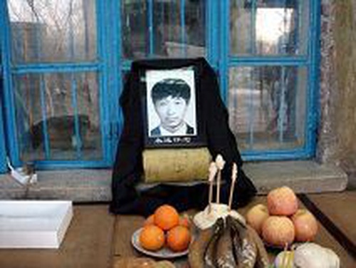 Tenda funebre in memoria di Wang Jianguo