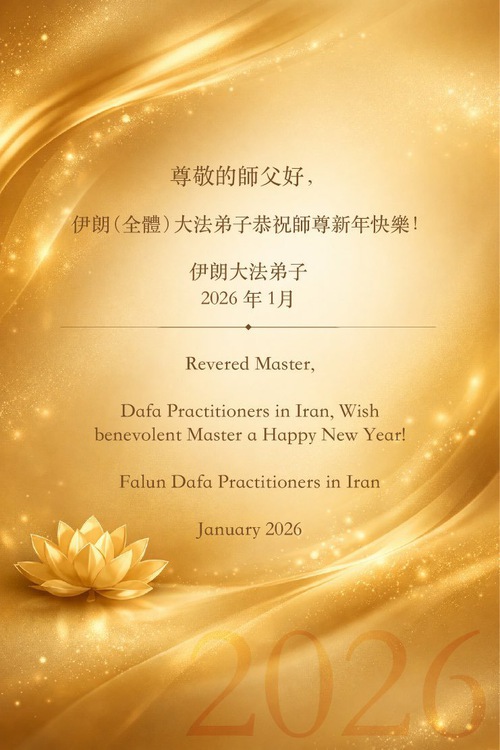 (Minghui.org) Per i praticanti della Falun Dafa, l'arrivo del nuovo anno offre una nuova opportunità per diventare persone migliori allineandosi ai principi di Verità, Compassione e Tolleranza, che include studiare gli insegnamenti della Fa con impegno e applicarli a tutto ciò che incontrano. In questa speciale occasione, i praticanti di 59 paesi e regioni hanno inviato i loro auguri a Minghui per ringraziare il Maestro Li, il fondatore della Falun Dafa, per questa opportunità e per augurargli un felice anno nuovo!