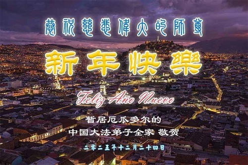 (Minghui.org) Un praticante della Falun Dafa dalla Cina, che risiede temporaneamente in Ecuador insieme alla sua famiglia, augura con rispetto al Grande Benevolente Maestro un felice anno nuovo!