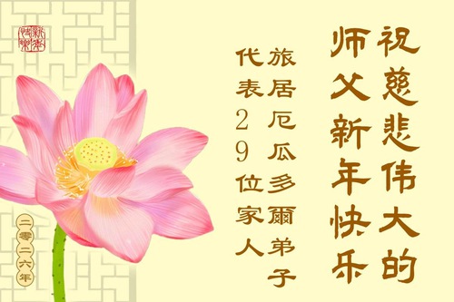 Un praticante della Falun Dafa dalla Cina, che risiede in Ecuador, insieme ai suoi parenti e amici, augura con rispetto al Grande Maestro Benevolo un felice anno nuovo!