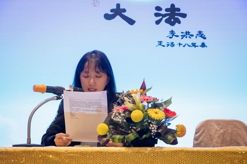 Ventuno praticanti hanno parlato delle loro esperienze nel seguire i principi della Falun Dafa di Verità-Compassione-Tolleranza e di guardare dentro di sé in diversi ambienti: a casa, al lavoro e durante la partecipazione ai progetti di chiarimento della verità. Hanno detto di credere nel Maestro e nella Fa, di aver superato le difficoltà con pensieri retti e di aver formato un corpo unico con gli altri praticanti per assistere il Maestro nel salvare gli esseri senzienti.