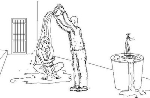 Illustrazione della tortura: bagnata con acqua fredda