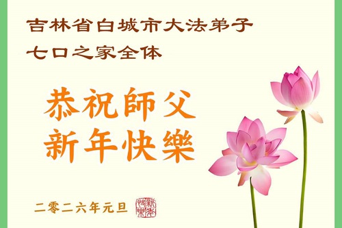 Sono stati ricevuti anche auguri da un residente della città di Jilin, nella provincia dello Jilin, che ha un familiare che pratica la Falun Dafa; da una famiglia di tre persone nella città di Loudi, nella provincia dell’Hunan; da una coppia di anziani nella contea di Boli, nella provincia dell’Heilongjiang; e da una famiglia di quattro generazioni nella città di Baicheng, nella provincia dello Jilin.