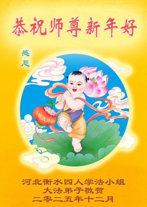 I praticanti della città di Zhengzhou, nella provincia dell’Henan, hanno scritto: "La Falun Dafa ci ha portato buona salute e armonia familiare, e avendo assistito a questi benefici, anche i nostri familiari sostengono la Dafa, e hanno ricevuto a loro volta benedizioni. Nel prossimo anno nuovo, faremo meglio a seguire i principi di Verità, Compassione e Tolleranza, e ad aiutare il Maestro a salvare le persone".