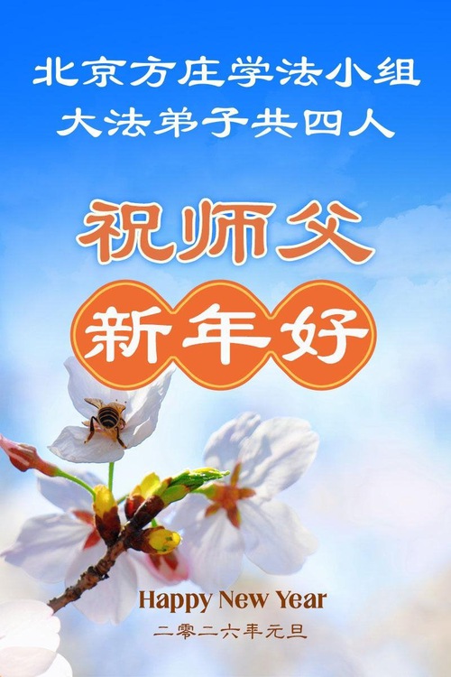 I praticanti del distretto di Fengtai a Pechino sono d'accordo. "Con l'arrivo del nuovo anno, faremo bene studiando gli insegnamenti della Dafa ed elevando noi stessi, inviando pensieri retti e aiutando il Maestro a salvare le persone, migliorando insieme", hanno scritto nei loro auguri. "Non importa quanto lungo sia questo viaggio e quali difficoltà potremmo incontrare, siamo sempre pronti a fare bene, perché siamo praticanti della Falun Dafa ed è per questo che siamo qui. Grazie Maestro Li e Vi auguriamo un felice anno nuovo!".