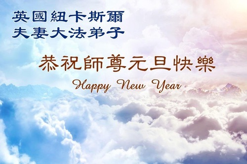 Marito e moglie praticanti di Newcastle, Regno Unito, hanno augurato al venerato Maestro un felice anno nuovo!