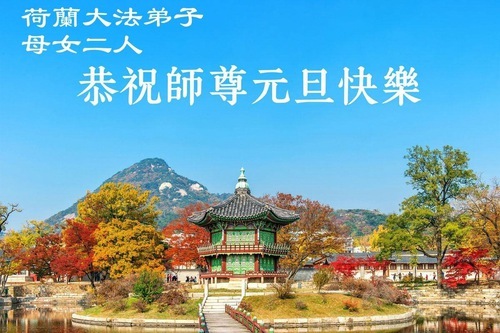 Una madre e una figlia praticanti nei Paesi Bassi hanno augurato un felice anno nuovo al venerato Maestro!