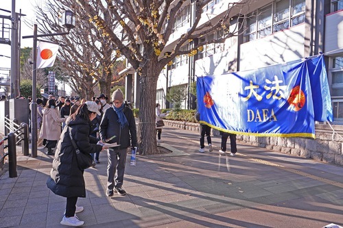(Minghui.org) Il giorno di Capodanno, i praticanti giapponesi del Falun Gong si sono riuniti a Kudanshita, Tokyo, per parlare alle persone che partecipavano all'Hatsumōde (il rituale di preghiera giapponese di Capodanno) della persecuzione del Falun Gong in Cina, e per invitare tutti i settori della società ad aiutare a fermarla.