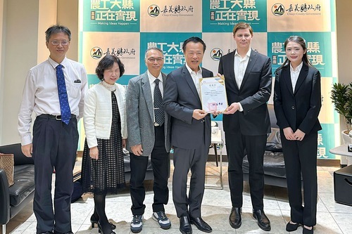 Il 20 gennaio, il magistrato della contea di Chiayi Weng Chang-liang (terzo da destra) ha consegnato un attestato di riconoscimento ai presentatori di Shen Yun a nome del governo della contea, ringraziando Shen Yun per aver offerto un'esperienza artistica di livello mondiale al pubblico del sud di Taiwan