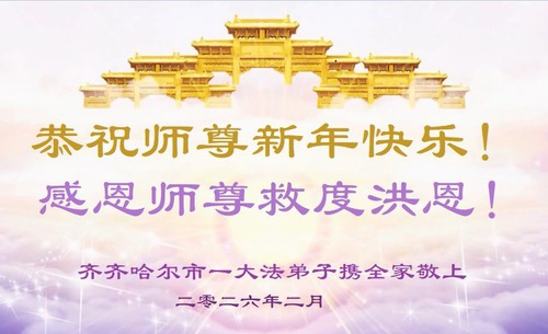 Gli auguri provengono dai praticanti delle seguenti città:Daqing, Qiqihar, Qitaihe, Harbin, Jixi, Mudanjiang, Heihe, Yichun, Shuangyashan, Jiamusi, Nengjiang e altre aree.