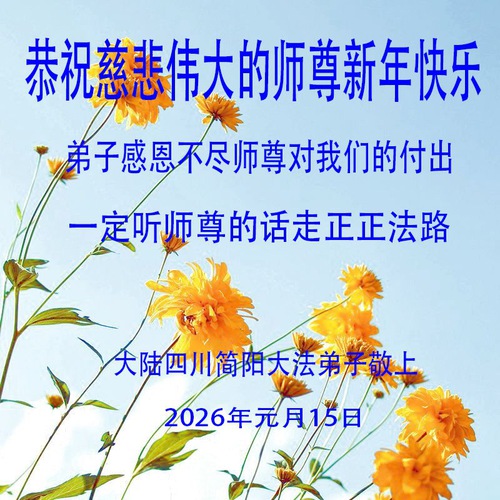 Gli auguri provengono dai praticanti delle seguenti città:Mianyang, Nanchong, Ziyang, Jianyang, Dazhou, Leshan, Neijiang, Shifang, Deyang, Xichang, Panzhihua, Nanchong, Guang’an, e altre aree.