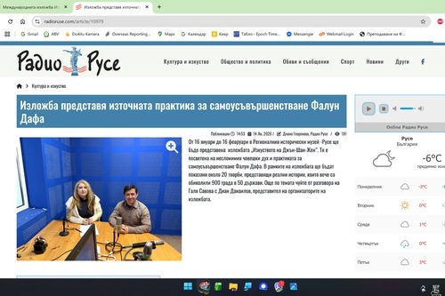 Due giorni prima dell'inaugurazione della mostra, Radio Ruse, un programma radiofonico regionale, ha invitato Dian Danilov, uno degli organizzatori della mostra, come ospite speciale nella sua rubrica dedicata all'arte e alla cultura. Danilov ha spiegato il significato delle opere d'arte esposte, nonché la storia della Falun Dafa come disciplina spirituale.