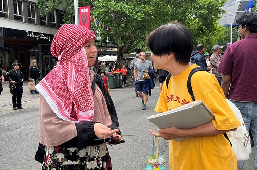 I praticanti parlano con i visitatori della Falun Dafa e della persecuzione da parte del PCC