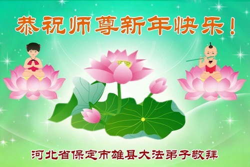 Gli auguri provengono dai praticanti delle seguenti città:Baoding, Dingzhou, Langfang, Handan, Zhangjiakou, Xing’an, Qinhuangdao, Tangshan, Hengshui, Cangzhou, Xingtai, Pingquan, Hejian, e altre aree.
