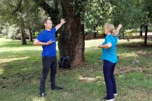 Andrie di Johannesburg ha praticato gli esercizi della Falun Dafa in un parco