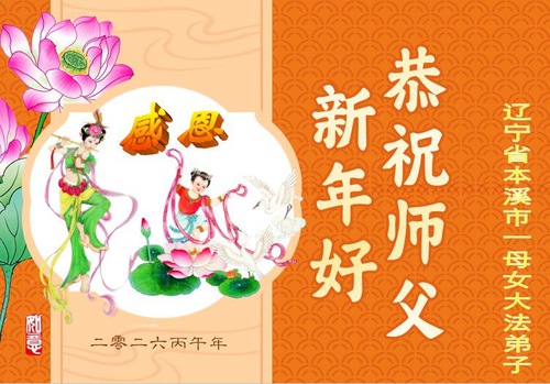 Gli auguri provengono dai praticanti delle seguenti città:Dalian, Chaoyang, Fushun, Huludao, Ahshan, Benxi, Tieling, Fuxin, Jinzhou, Panjin, Liaoyang, Yingkou, e altre aree.