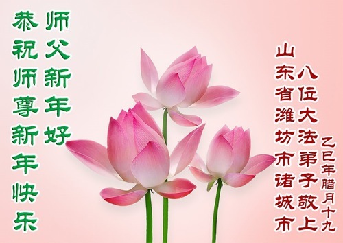 I praticanti della Falun Dafa della provincia dello Shandong augurano rispettosamente al Maestro Li Hongzhi un Felice Anno Nuovo Cinese (109 auguri)