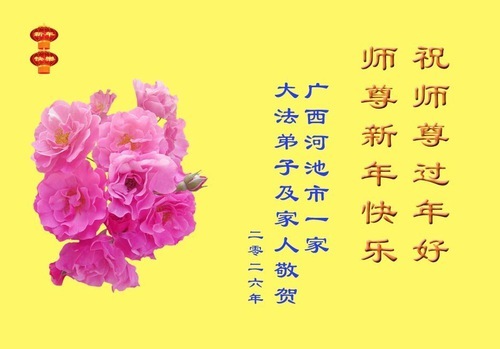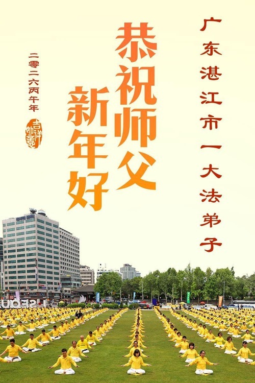 Gli auguri provengono dai praticanti delle seguenti città:Provincia del Guangdong: Zhuhai, Guangzhou, Foshan, Maoming, Shanwei, Shantou, Shenzhen, e altre aree.Provincia dell’Hainan: Danzhou, Haikou, Wanning, Lingshui, e altre aree.Provincia dell’Hunan: Yueyang, Shaoyang,e altre aree.Provincia del Jiangsu: Nanjing, Wuxi, Yancheng, Nantong, Zhenjiang, e altre aree.Regione Autonoma del Guangxi: Liuzhou, Guilin, Yulin, Hechi, e altre aree.