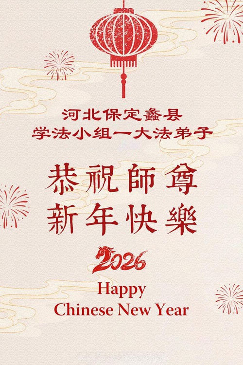 (Minghui.org) In occasione del Capodanno cinese 2026, i praticanti della Falun Dafa inviano i loro più sinceri auguri al Maestro Li Hongzhi, fondatore della pratica. Lo ringraziano per aver introdotto la Dafa nel mondo e promettono di coltivare meglio sé stessi nel nuovo anno.