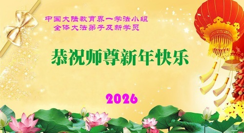 Questo articolo contiene gli auguri dei praticanti della Falun Dafa di tutta la Cina che lavorano nel sistema educativo cinese. Esprimono la loro gratitudine al Maestro Li Hongzhi, gli augurano un felice Capodanno cinese e promettono di continuare a coltivarsi diligentemente nel prossimo anno.