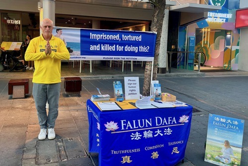 Jason va a chiarire la verità regolarmente sulla persecuzione vicino a Surfers Paradise, a pochi passi dalla costa e dal mercato sul mare, una destinazione popolare che attira turisti locali e internazionali da tutto il mondo. Molte persone si fermano a leggere gli striscioni colorati sulla Falun Dafa, e guardano i praticanti mentre dimostrano gli esercizi, venendo a conoscenza della persecuzione della pratica in Cina, e firmando le petizioni per aiutare a porvi fine.