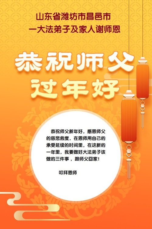 I praticanti e i sostenitori della Falun Dafa della provincia dello Shandong augurano rispettosamente al Maestro Li Hongzhi un Felice Anno Nuovo Cinese (115 auguri)