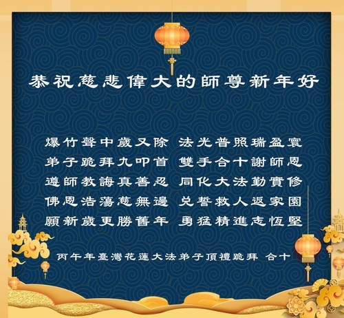 (Minghui.org) I praticanti della Falun Dafa di Taiwan, Hong Kong e Macao augurano al Maestro Li un felice Capodanno cinese: