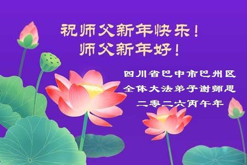 I praticanti che hanno inviato gli auguri dalla provincia del Sichuan provengono dalle seguenti città: Suining, Ziyang, Nanchong, Deyang, Liangshan, Leshan, Bazhong, Panzhihua, Dezhou, Yibin, Neijiang, e altre aree.