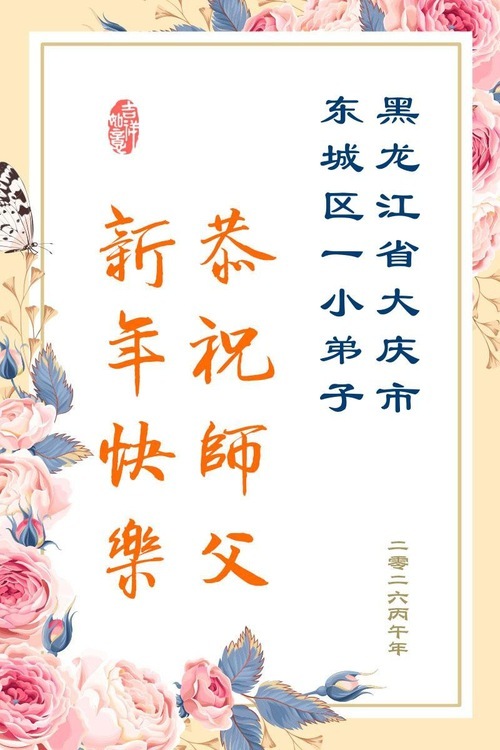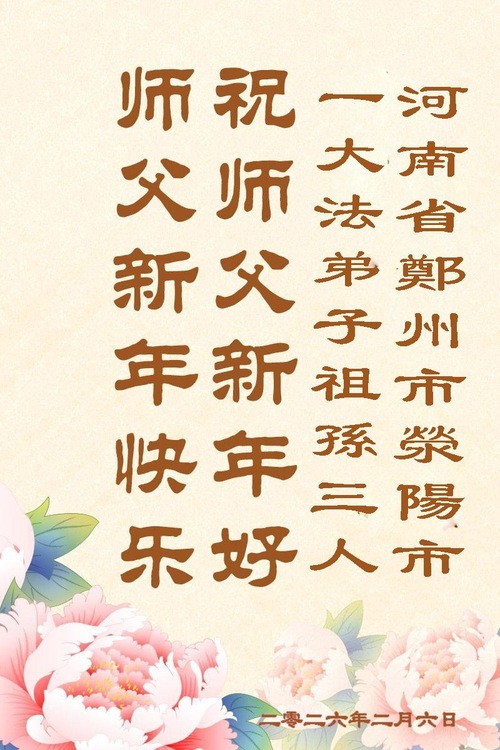 (Minghui.org) Con l'arrivo del Capodanno cinese 2026, molti giovani praticanti della Falun Dafa in Cina desiderano esprimere il loro sincero rispetto e gratitudine al Maestro Li Hongzhi, fondatore della Falun Dafa. Questi giovani praticanti augurano al Maestro Li un felice anno nuovo e promettono di essere più diligenti nella coltivazione.