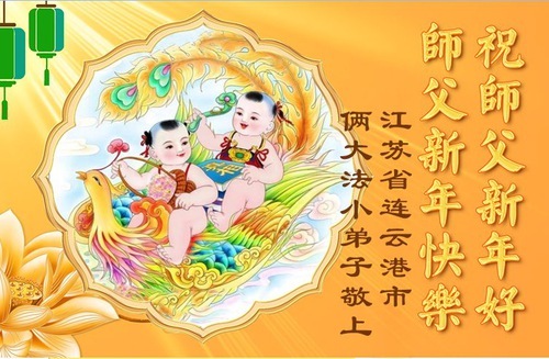 Due giovani praticanti della città di Songyuan, nella provincia di Jilin, hanno scritto: "Buon anno, Maestro! Grazie per la sua compassionevole protezione! Siamo due gemelli di sei anni, un maschio e una femmina. Siamo nati malati. Nostra nonna ci faceva ascoltare le registrazioni delle lezioni del Maestro. Siamo diventati più forti e abbiamo smesso di ammalarci. Grazie, Maestro, per la Sua compassionevole salvezza!".