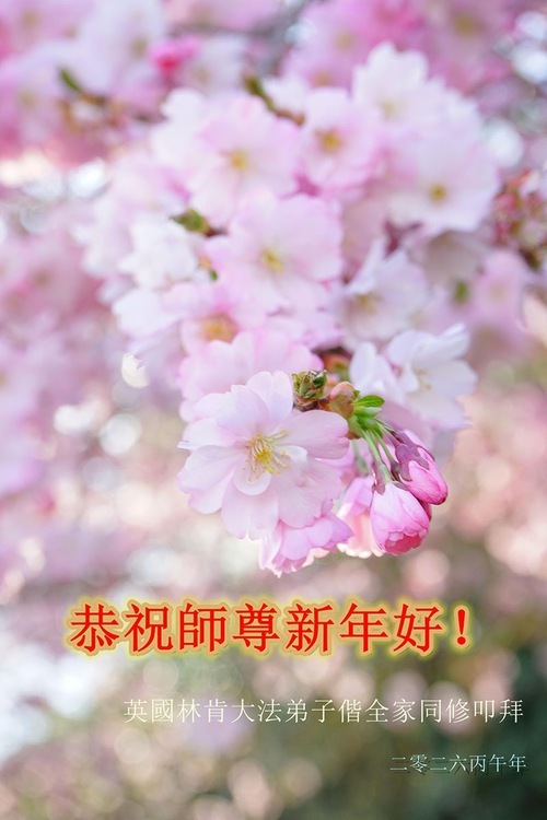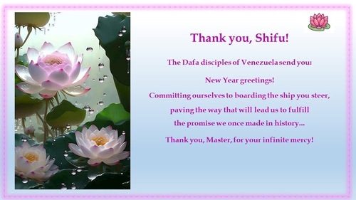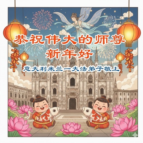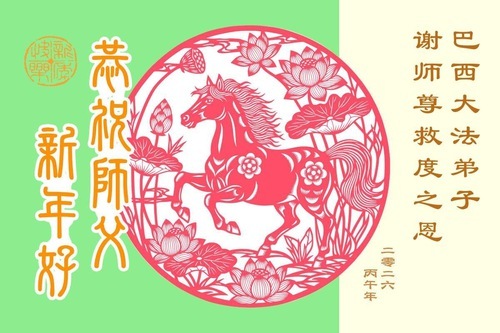 Un altro anno è arrivato sotto il segno del Cavallo di Fuoco,e noi ti ringraziamo, Maestro, per averci guidato lungo il percorso;la Dafa porta benefici alle persone di tutto il mondo,mentre una nuova era di rinascita morale e prosperità è alle porte