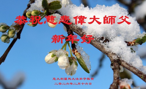 Tra la neve e i prugni invernali, un altro anno è arrivato,mentre ringraziamo la Falun Dafa nei nostri cuori che ci stanno a cuore.Coltivare noi stessi e aiutare a salvare le persone è la nostra missione,faremo del nostro meglio e ci impegneremo senza omissioni