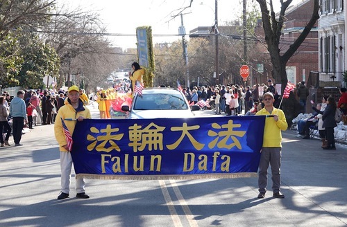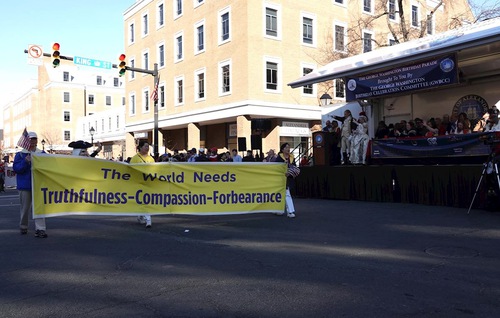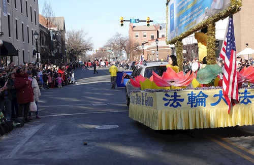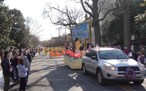 (Minghui.org) Lo scorso 14 febbraio, i praticanti della Falun Dafa sono stati invitati a partecipare alla parata per il compleanno di George Washington ad Alexandria, in Virginia. Il grande evento ha celebrato il 250° anniversario degli Stati Uniti, e il 294° compleanno di George Washington, il primo presidente degli Stati Uniti.