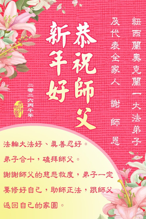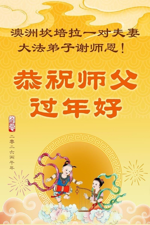 (Minghui.org) Per festeggiare il Capodanno cinese del 2026, i praticanti della Falun Dafa provenienti dall'Australia, tra cui Sydney, Canberra, Melbourne, Queensland, Brisbane e Perth, e dalla Nuova Zelanda, Auckland e Hamilton, hanno inviato i loro auguri di buon anno cinese al Maestro Li: