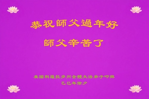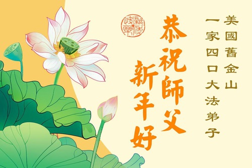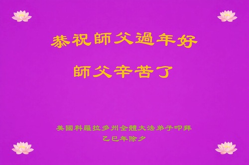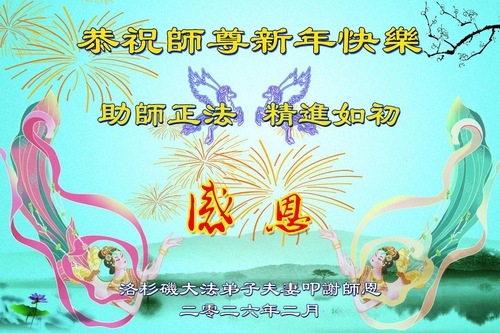 Auguri di buon anno al Maestro da parte dei praticanti di un gruppo di studio della Fa a San Jose, California