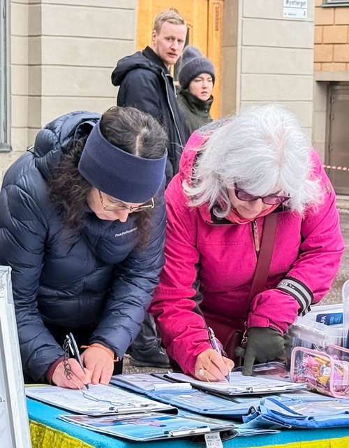 Il 24 gennaio ha nevicato a Stoccolma e la temperatura era scesa a -8 °C, ma i praticanti hanno continuato anche quando ha iniziato a nevicare. Le persone si sono fermate a parlare, li hanno lodati per la loro determinazione e coraggio, e hanno firmato la petizione.