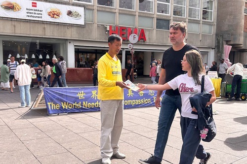 I praticanti olandesi organizzano regolarmente eventi sulla Grote Markststraat, una strada commerciale nel centro dell'Aia. Mostrano i cinque esercizi, distribuiscono volantini e parlano con le persone. Uomini d'affari, studiosi, studenti internazionali, attivisti per i diritti umani e turisti internazionali si fermano per conoscere la Falun Dafa e la persecuzione in corso da parte del PCC. Molti di coloro che sentono parlare della persecuzione per la prima volta rimangono sbalorditi. Altri, che già conoscono la situazione, esprimono il loro sostegno e la loro ammirazione per i praticanti.