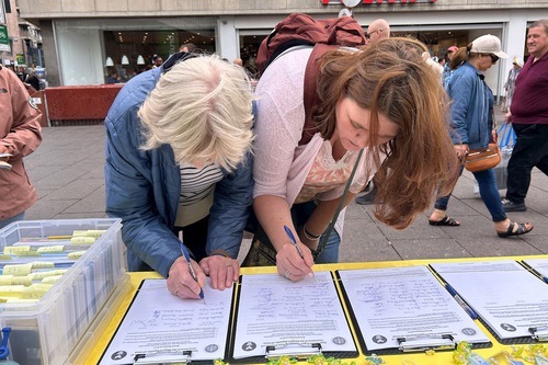 Le persone firmano la petizione per sostenere gli sforzi dei praticanti volti a porre fine alla persecuzione
